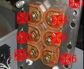 1.1、先測(cè)量壓縮機(jī)的絕緣和接地是否完好。測(cè)量接地首先測(cè)量壓縮機(jī)的6個(gè)接線柱,1到6每個(gè)接線柱與接地端子7之間是否都有大于5兆歐的阻值,大于即絕緣良好,小于則絕緣損壞。